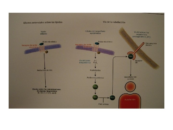 Niacina LP/Laropiprant • Indicación –Tratamiento de la dislipidemia, especialmente en los pacientes con dislipidemia combinada mixta (caracterizada por unas concentraciones elevadas de colesterol LDL y de triglicéridos y por unas concentraciones bajas de colesterol HDL) y en los pacientes con hipercolesterolemia primaria (heterocigótica familiar o no familiar). –Tredaptive debe usarse en los pacientes en combinación con inhibidores de la HMGCo. A reductasa (estatinas) cuando el efecto hipocolesteromiante conseguido con los inhibidores de la HMG-Co. A reductasa en monoterapia es insuficiente. Sólo puede usarse en monoterapia en pacientes en los que los inhibidores de la HMG-Co. A reductasa no son tolerados o no están indicados. Durante el tratamiento con Tredaptive debe seguirse una dieta y otros tratamientos no farmacológicos (p. ej. , ejercicio, reducción de peso). • Contraindicaciones –Hipersensibilidad a los principios activos o a alguno de los excipientes –Disfunción hepática importante o inexplicable –Úlcera péptica activa –Sangrado arterial Ficha Técnica de TREDAPTIVE® (ácido nicotínico/laropiprant) comprimidos de liberación modificada. Agencia Europea del Medicamento (EMEA) Web site. www. emea. europa. eu. Consultado el 1 de abril 2009.