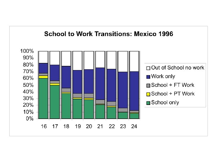 Los grandes retos Expandir el accesoeducación y o entrenamiento: a nivel secundario/postsecundario y en el trabajo n n Entender los determinates del proceso de transición entre la educación y el trabajo que domina en la región Y en particular, el rol de la politica laboral Contenido: desarrollar competencias analiticas y de comunicación y reducir el énfasis en memorización y repetición.