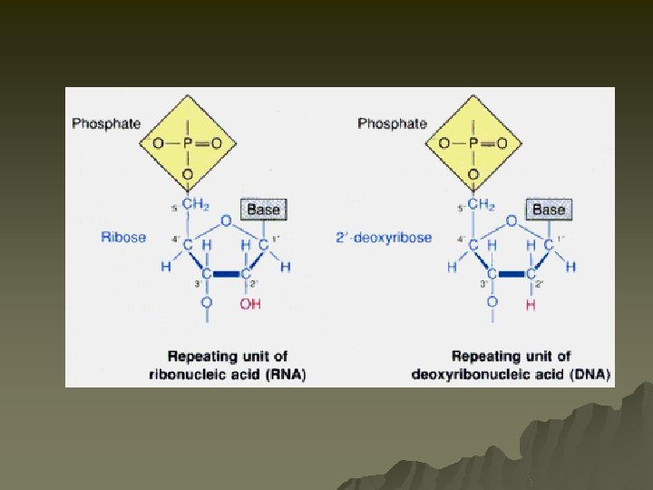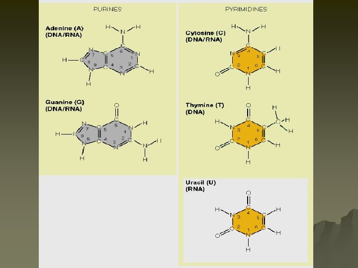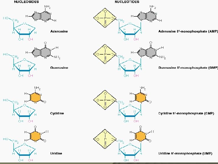 u u Merupakan prekursor / dasar untuk asam nukleat, RNA dan DNA Struktur terdiri dari – Basa – Gula – phosphat