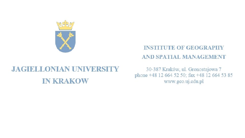 1. Department of Physical Geography 2. Department of Geography of Population, Settlement and Farming 3. Department of Geomorphology 4. Department of Pedology and Soil Geography 5. Department of Tourism and Health Resort Management 6. Department of Hydrology 7. Department of Climatology 8. Department of Regional Development 9. Department of Geographical Information Systems, Cartography and Remote Sensing 10. Research Team on Geography of Religion Fig. 8. Institute of Geography and Spatial Management: departments and research teams Source: www. geo. uj. edu. pl
