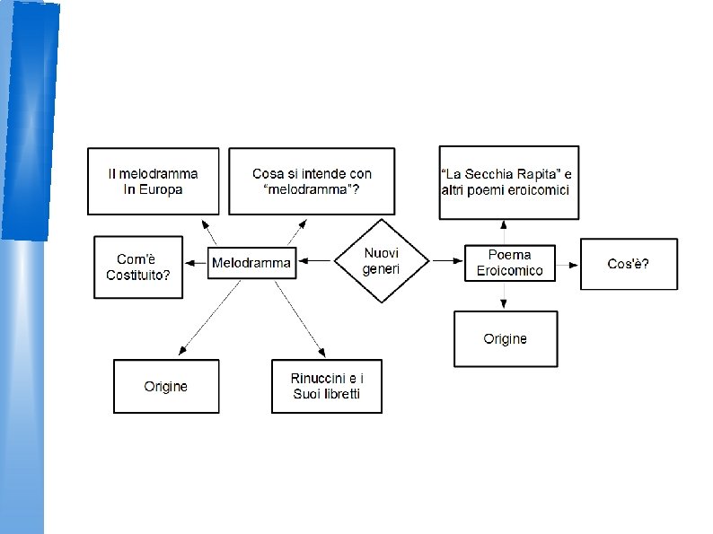 Perché proprio nel Seicento Come per molti altri ambiti si è voluto innovare e rinnovare anche il genere del poema, vi furono tendenzialmente 3 scuole di pensiero: I. Il poema sacro: genere portato avanti principalmente da Milton di cui un esempio è il suo Paradiso perduto. Come suggerito anche dal nome l’attenzione è posta sui temi più sacrali presenti nei poemi eroici. II. Il poema eroico barocco: questa variante del poema eroico focalizza l’attenzione non sulla guerra ma sugli aspetti più intimi e personali della vita dei personaggi, l’esempio più grande è dato da L’Adone di Giovan Battista Marino. III. Il poema eroicomico: genere di cui tratterò in maniera più approfondita, unisce a trame epiche delle situazioni improbabili ed esagerate che finiscono con lo sfociare nel ridicolo e nel grottesco provocando il divertimento del lettore.