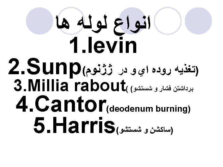Peptic Ulcer Disease l. Pharmacological management ¡Histamine blockers (Tagamet, Zantac) l. Blocks gastric acid secretion ¡Carafate l. Forms protective layer over the site ¡Mucosal barrier enhancers (bismuth subsalicylate , prostoglandins) l. Protect mucosa from injury ¡Antibiotics( ﻣﺘﺮﻭﻧیﺪﺍﺯﻭﻝ ﻭ ، کﻼﺭیﺘﺮﻭﻣﺎیﺴیﻦ ﺗﺘﺮﺍﺳیکﻠیﻦ , ) آﻤﻮکﺴی ﺳیﻠیﻦ l. Treat H. Pylori infection