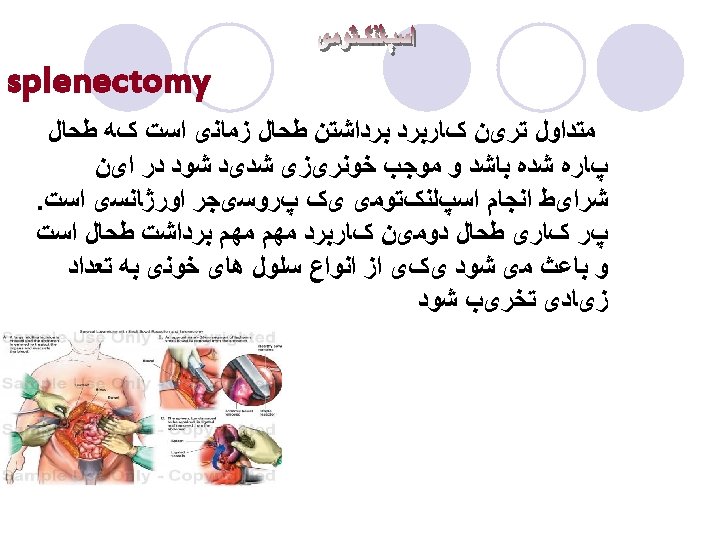 Peritonitis 8. Surgery l a. Laparotomy to treat cause (close perforation, removed inflamed tissue) l b. Peritoneal Lavage: washing out peritoneal cavity with copious amounts of warm isotonic fluid during surgery to dilute residual bacterial and remove gross contaminants l c. Often have drain in place and/or incision left unsutured to continue drainage