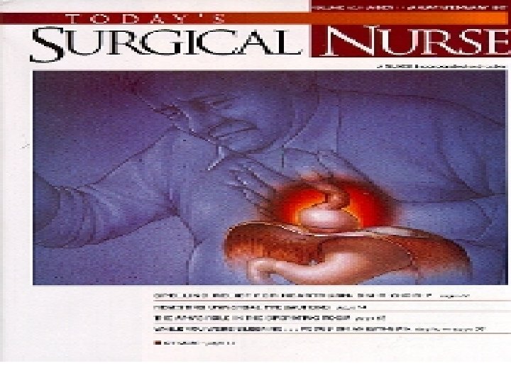 Diagnostic Evaluation l Magnetic Resonance Imaging: Noninvasive, uses magnetic fields and radio waves: ¡Useful in evaluating soft tissues, vessels, neoplasm ¡Contraindicated for pts with pacemakers, metal implants l Nursing Interventions: NPO for 6 -8 hrs prior, remove all jewelry, procedure takes 30 -90 minutes, close fitting scanner may cause feelings of claustrophobia l Anoscopy, Proctoscopy, Sigmoidoscopy: ¡Viewing of lower colon through rigid or flexible scope l Nursing Interventions: Minimal bowel cleansing, monitor vital signs during and after procedure