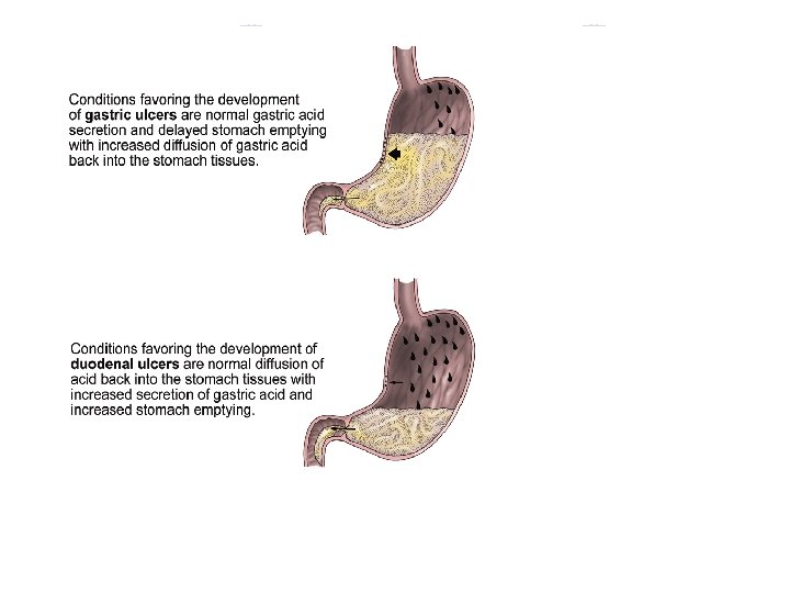 Peptic Ulcer Disease (PUD) 2. Pathophysiology l A. Ulcers or breaks in mucosa of GI tract occur with 1. H. pylori infection (spread by oral to oral, fecal-oral routes) damages gastric epithelial cells reducing effectiveness of gastric mucus 2. Use of NSAIDS: interrupts prostaglandin synthesis which maintains mucous barrier of gastric mucosa l b. Chronic with spontaneous remissions and exacerbations associated with trauma, infection, physical or psychological stress