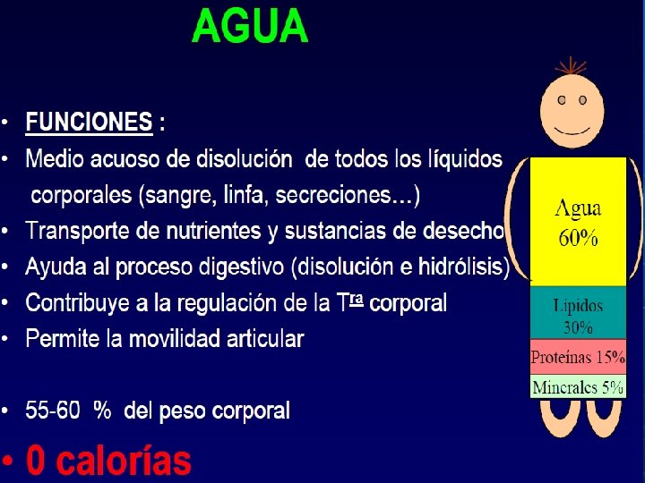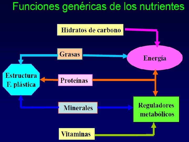 APORTE CALORICO DE LOS NUTRIENTES El agua , los minerales y las vitaminas no aportan energía directamente.