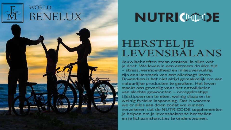 NUTRICODE Vitamins for her BELANGRIJKE INGREDIENTEN HOE TE GEBRUIKEN ØThiamine, riboflavine en vit B 12 Verhoogt het energieniveau en de vitaliteit tewijl ons energieniveau Ø 2 tabletten/dag met water voor vrouwen reguleert met of zonder ØVit A, C en E zwangerschapsplanne Beschermen ons lichaam tegen oxidatieve stress n Stimuleert ons immuunsysteem Stimuleert de cardiovasculaire functionering ØFoliumzuur Reguleert groei en functionering van de lichaamscellen Speel een belangrijke rol in de juiste ontwikkeling van een foetus ØVit D en K Versterken ons skelet, tanden Boosten ons immuunsysteem ØChroom Verlaagt de zin in zoetigheden en verbrand vet Helpt een normaal lichaamsgewicht behouden