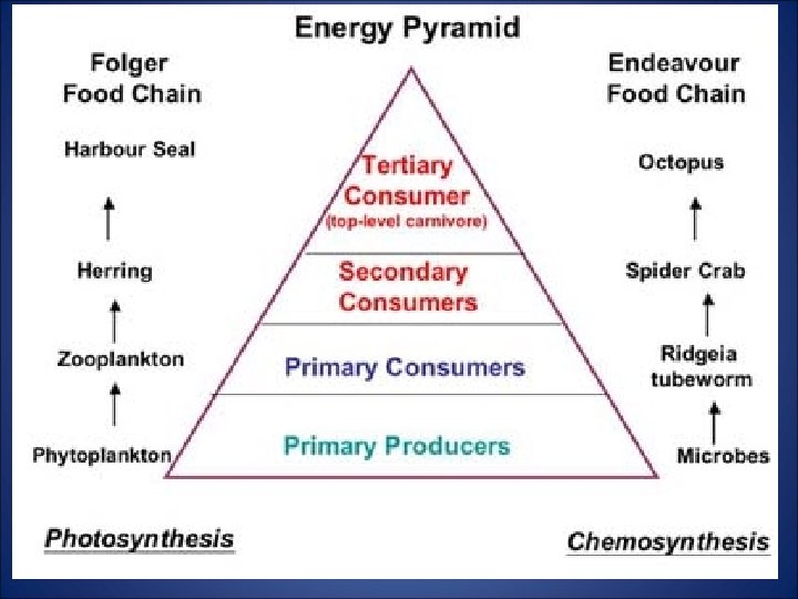 DETRIVORES AND DETRITUS • Some heterotrophs (e. g. , earthworms, flies, beetles, crabs, sea cucumbers, ants, vultures, hyenas, etc. ) depend on detritus (dead organic material/biomass), rather than live organic material. • Note: animals can be both a herbivore and a detrivore, or a carnivore or omnivore and a detrivore, i. e. , they eat both living and dead organisms.