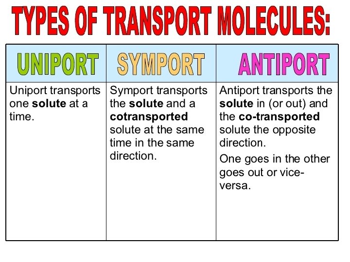 Images of Uniport, Symport and Antiport.