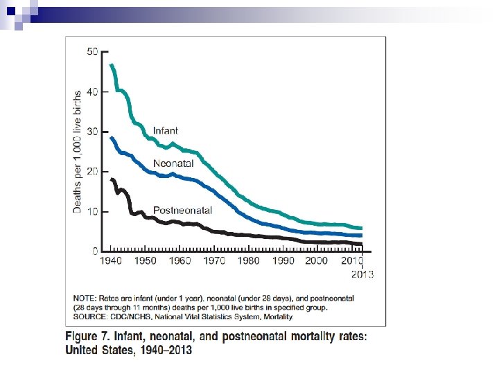 Neonatal (<28 days) Mortality Data Population Neonatal mortality rate, Year deaths/1000 live births U. S. overall 6. 26 2012 Hispanic 5. 58 2012 Non-Hispanic Black Non-Hispanic White 10. 75 2012 5. 25 2012