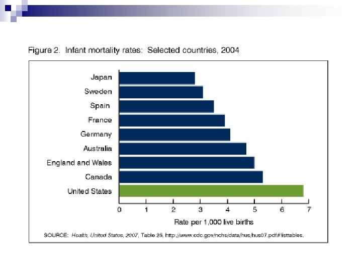 United States Data Life expectancy girl born today = 82 n Under 5 mortality rate: 6. 9 deaths/1000 live births n Lifetime risk of dying as a result of pregnancy or childbirth, 1 in 1, 800 n