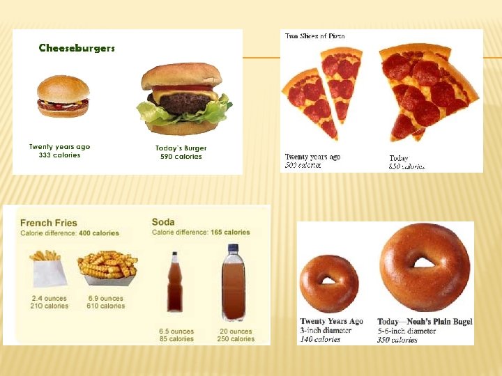 FAST FOOD FACTS Ø Ø Ø Ø Each day, 1 in 4 Americans eat at fast food restaurants. In 1972 $3 billion dollars a year was spent on fast food…today more than $110 billion dollars are spent. There are 11, 100 Burger King Restaurants in 65 countries and U. S. territories. There are over 30, 000 Mc. Donald’s restaurants serving 50 million people in 119 countries daily. Mc. Donalds has served nearly 432 million pounds of vegetables, and 181 million pounds of fruit. The amount of lettuce served in Mc. Donalds’s restaurants in Japan would equal the weight of 30 Boeing 747’s. You would have to walk for 7 hours straight to burn off a Super Sized Coke, Fry & Big Mac. Hash Browns “weight for weight” contain more fat and calories than a cheeseburger or Big Mac.
