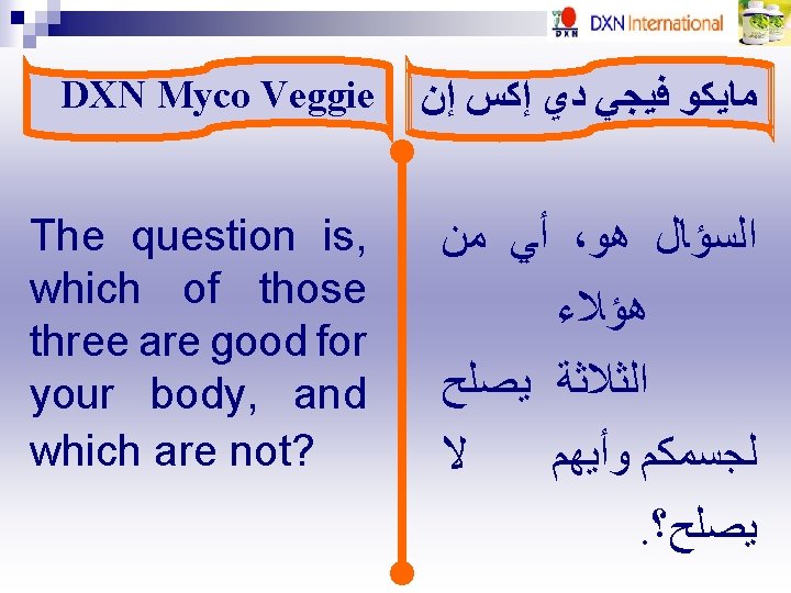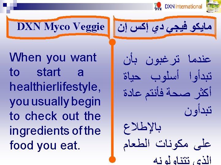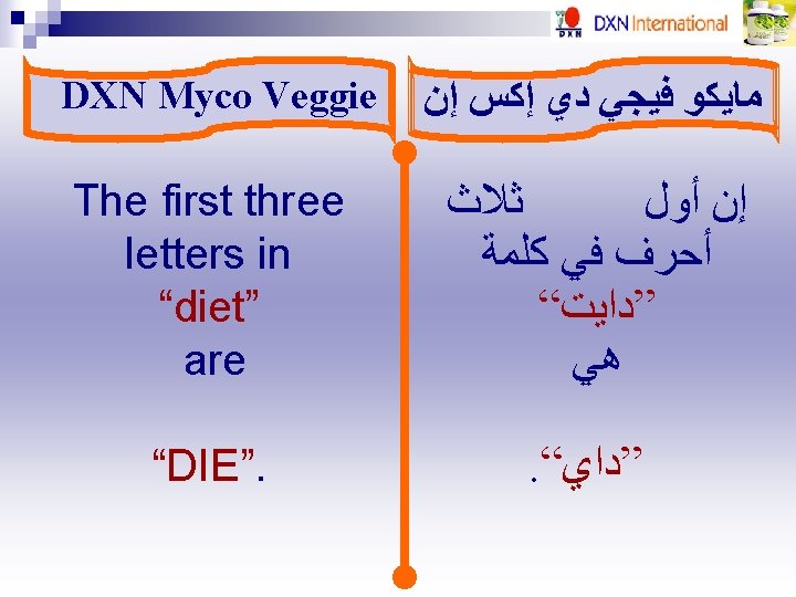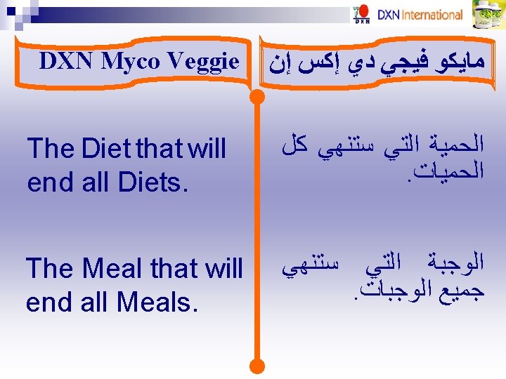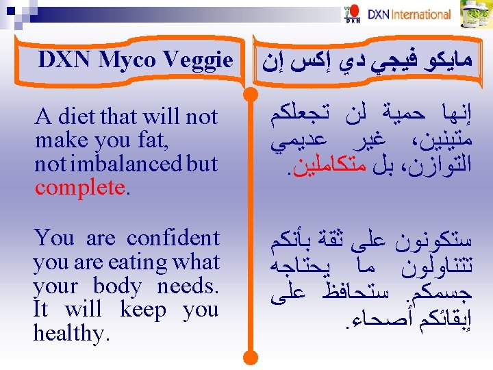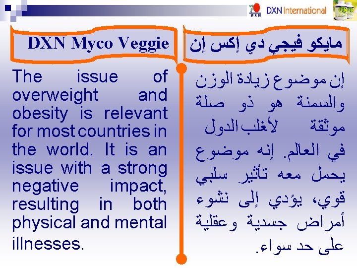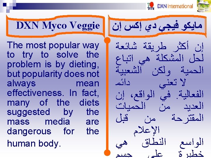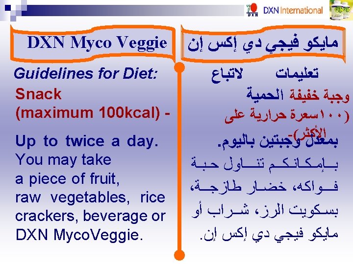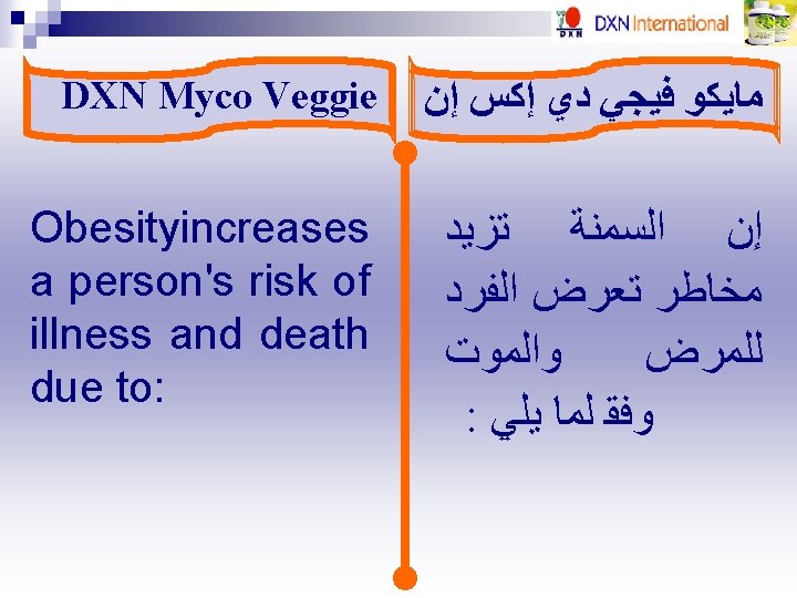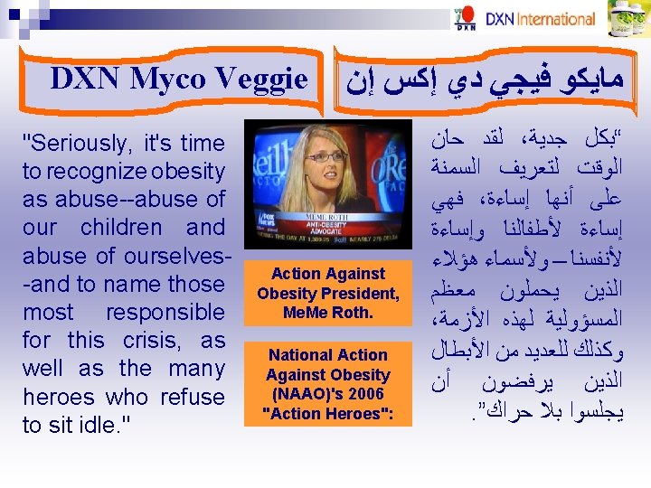 References - Myco. Veggii bottle ingredients - www. dxn 2 u. com - Dr. Reginal V. Hao’s Daxen Therapy - Google obesity and food nutrition's websites such as: - www. egocentrism. dk/. . . /Obesity. bmp - Pictures taken from Google pictures - Diet from Leader Abdul Rahman Terry who got it from Malaysia