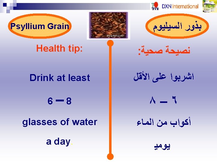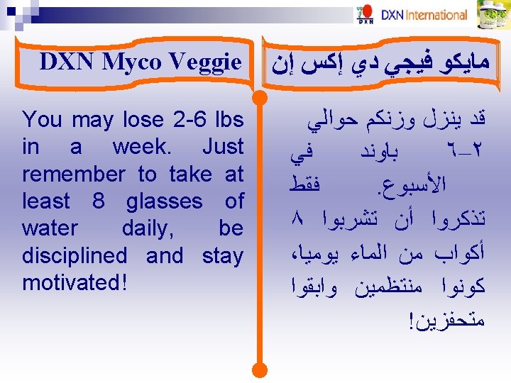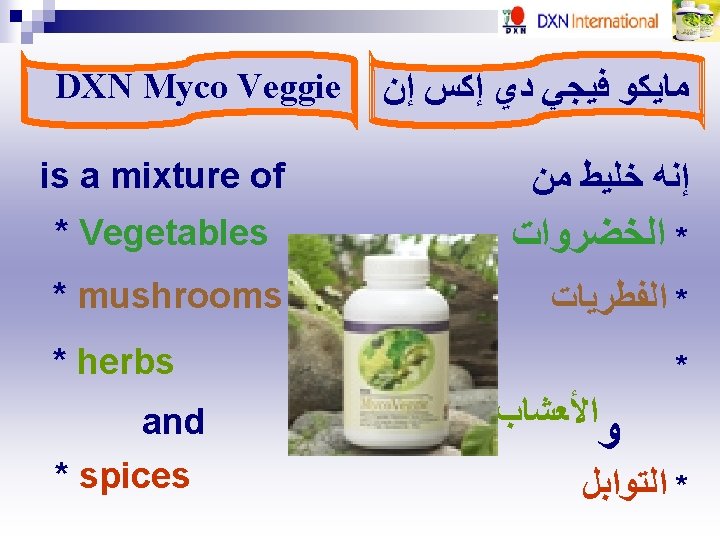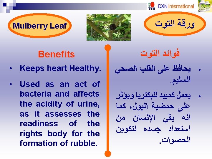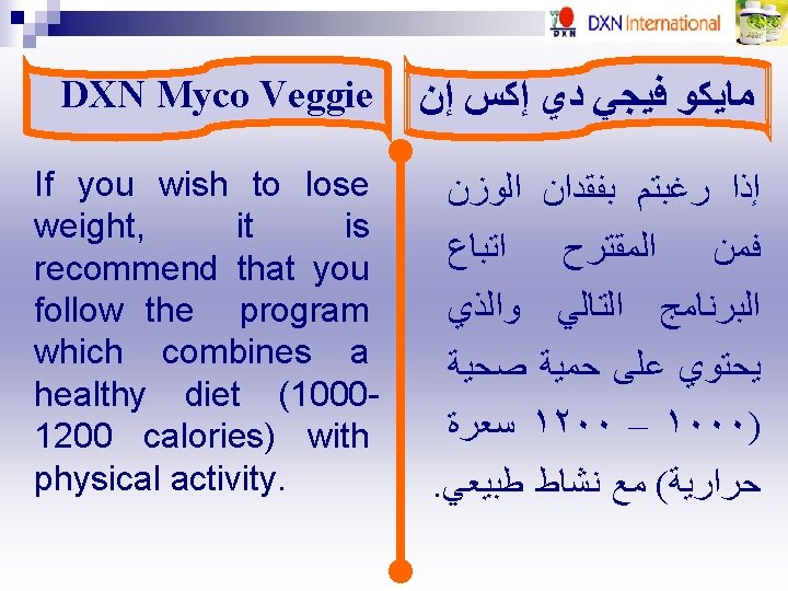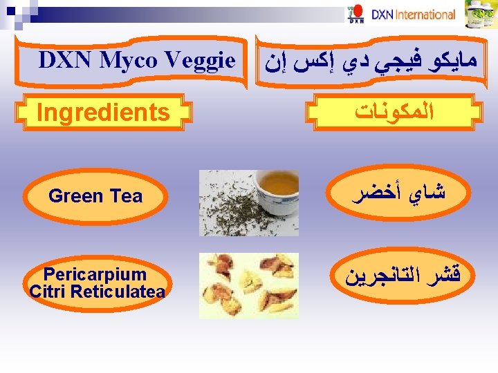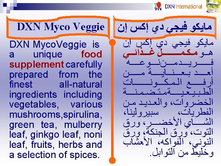 Top Quality Manufacturing & Processing Manufactured by DXN Industries (M) SDN BHD (410731 -D) 06000 Jitra, Kedah Darul Aman, Malaysia. Exclusively for: DXN Marketing SDN BHD (283904 -P) 43, Jalan SS, Damansara Jaya, 47400 Petaling Jaya, Selangor Darul Ehsan, Malaysia Tel: 03 -77253388 Fax: 03 -77251188 www. dxn 2 u. com