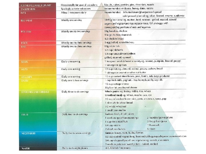 Conclusion Watch your: Water Fibre Fats and oils Sufficient plant phytonutrients and vitamins and minerals • Exercise/relaxation/Sunshine • • •