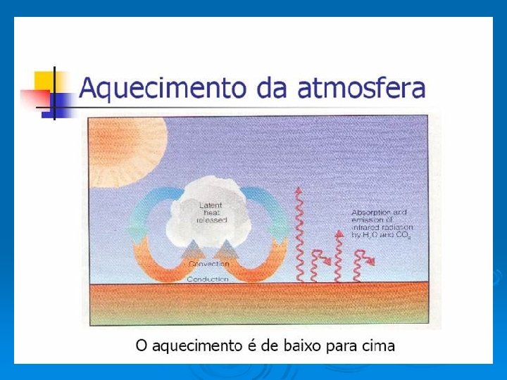 Absorção e reflexão da radiação solar O material particulado atua como obstáculo à radiação solar; Ø A radiação solar, antes propagada em uma única direção, passa a se dispersar; Ø Essa dispersão de energia é denominada espalhamento (e = λ-4); Ø A natureza do espalhamento depende do tamanho das partículas e do comprimento da onda incidente. Ø