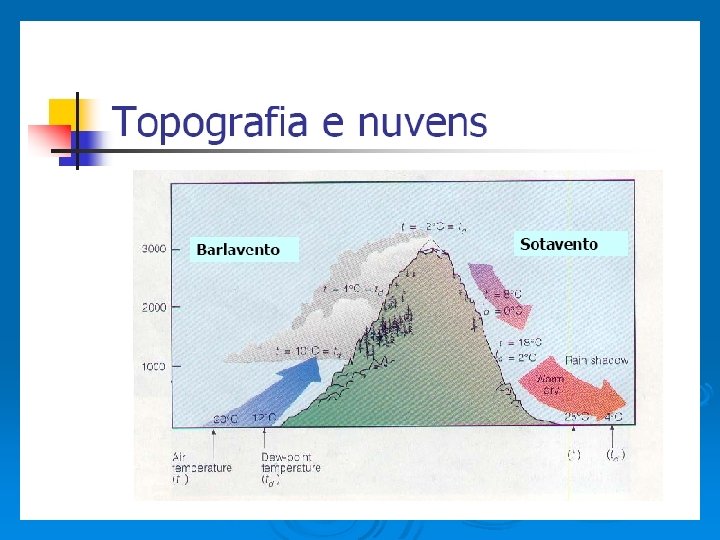 Importância do material particulado Ø Absorção e reflexão de radiação solar; Ø Cor do céu; Ø Formação de névoas, nevoeiros e nuvens; Ø Precipitação (núcleos de condensação).