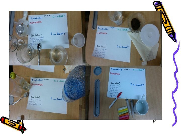 • “Experimentul ca metoda activă, are mai multă forţă de convingere decât oricare altă metodă şi deci posibilităţi sporite de înrâurire asupra formării concepţiei ştiinţifice despre natură la elevi” (Ioan Cerghit) • Fenomene studiate: • Dizolvarea • Decantarea • Filtrarea • Stări de agregare ale apei : Inghetarea