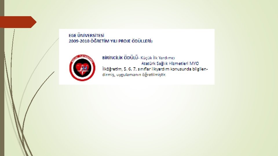 Projenin Aldığı Ödüller 2010 -2011 Eğitim- Öğretim Yılı’nda Ege Üniversitesi Topluma Hizmet Uygulamaları projeleri arasında ikinci seçilmiştir. 2011 -2012 ve 2013 -2014 öğretim yıllarında Ege Üniversitesi Jüri Özel Ödülü’nü almıştır.