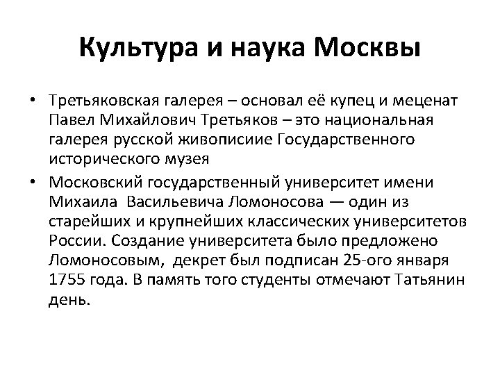 Název Ruské reálie - Moskva Předmět, ročník Ruský jazyk, 9. ročník Tematická oblast Ruské reálie Anotace Prezentace v ruském jazyce s výkladem a obrazovým materiálem o Moskvě Klíčová slova Moskva, Moskevský Kreml, Rudé náměstí, Treťjakovská galerie, Velké divadlo, Moskevská státní univerzita M. V. Lomonosova, Ostankino Datum 7. 3. 2017, upraveno 2020