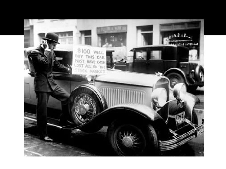 A QUEDA DA BOLSA �Quando a oferta é maior que a procura os preços tendem a cair. �Aumentou compra. a venda de ações e diminuiu a �Iniciou em 24/10/1929, na chamada QUINTA FEIRA NEGRA. �Mais de 80% das ações não encontraram compradores, causando a desvalorização