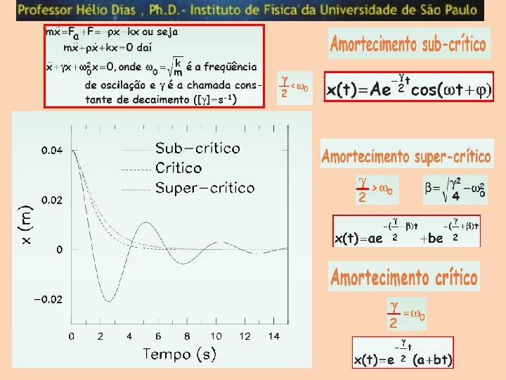 Usando-se a relação de Euler: A solução final tem a forma: O termo de atrito viscoso é: A freqüência angular desta oscilação será: A oscilação esta em estado crítico quando: Também chamado caso degenerado: