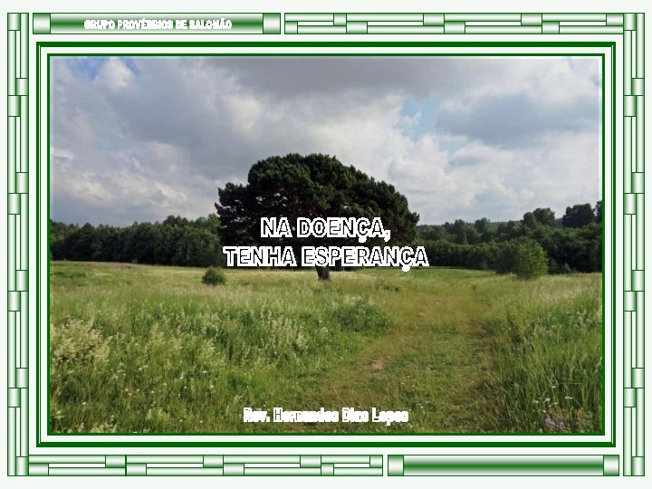 Não basta usar os recursos medicamentosos. Precisamos alimentar nossa alma com o tônico da esperança. Precisamos tirar os olhos das circunstâncias e colocá-los naquele que está no controle das circunstâncias. Nossos pés podem estar no vale, mas nosso coração deve estar no plano. Mesmo quando passamos por vales áridos, Deus pode transformá-lo em mananciais. O choro pode durar uma noite, mas a alegria vem pela manhã. PRÓXIMO SLIDE ANTERIOR