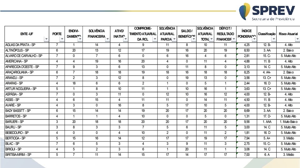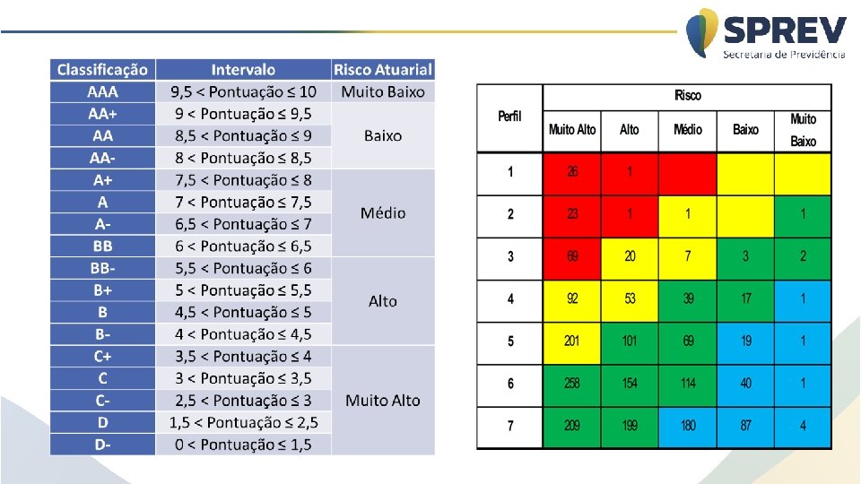 PORTARIA MF N° 464/2018 – PREFIL ATUARIAL PERFIL RISCO= PORTE+RISCO Porte: Estados e DF: Porte 1; Capitais: Porte 2 Municípios (população x quantidade segurados RPPS): Portes 3 a 7 Dados: CADPREV, SICONFI RISCO - INDICADORES: 1. Solvência Benefícios Concedidos (ativo líquido/RMBC); 2. Solvência Geral (ativos/RMT); 3. Solvência Financeira (contribuições/ benefícios pagos); 4. Resultado Atuarial/Resultado Financeiro 5. Duração Saldo Acumulado Mais 2 do ISP. .