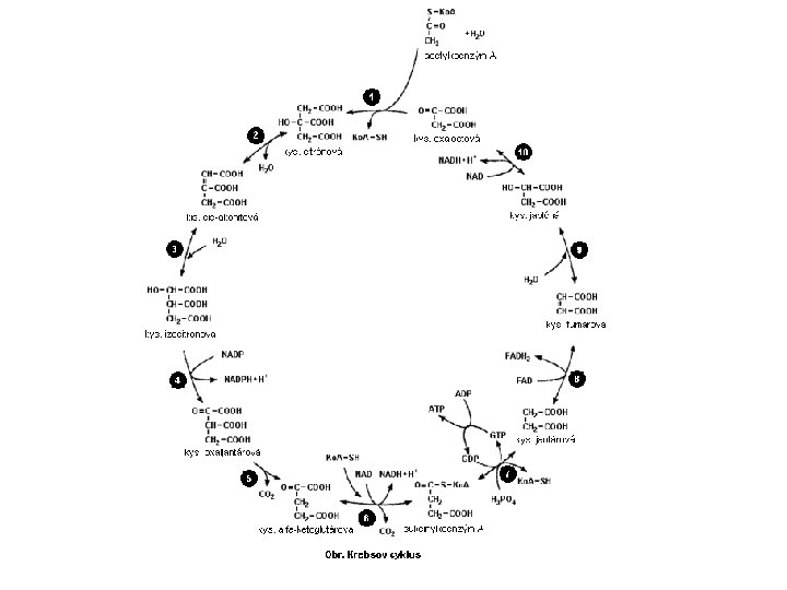 2. Aeróbna dekarboxylácia kys. pyrohroznovej - prebieha v matrixe mitochondrií - dochádza k oxidačnej dekarboxylácii (postupné odbúravanie CO 2) - z kys. pyrohroznovej vzniká acetylkoenzým A (akt. kys. octová, acetyl Co. A)
