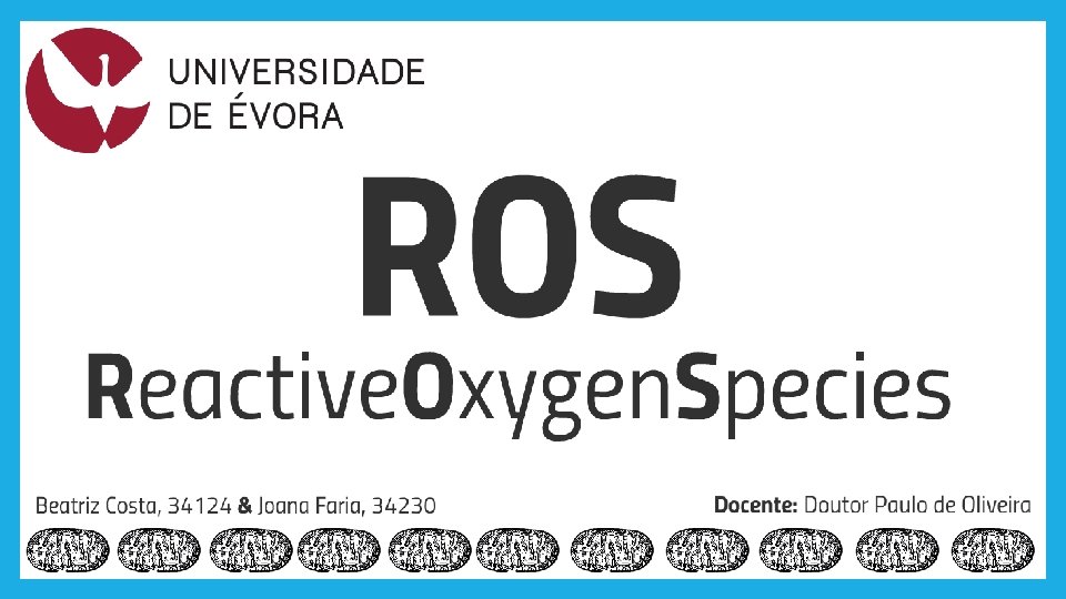 BIBLIOGRAFIA • • • • Aaron M. Gusdon, G. A. -B. (2015). Respiration and substrate transport rates as well as reactive oxygen species production distinguish mitochondria from brain and liver. AVRUCH, J. M. (2001). Mammalian Mitogen-Activated Protein Kinase Signal Transduction Pathways Activated by Stress and Inflammation. Bag, A. B. (Dezembro de 2008). Target Sequence Polymorphism of Human Manganese Superoxide Dismutase Gene and Its Association with Cancer Risk: A Review. Chapple, I. (1997). Reactive oxygen species and antioxidants in inflammatory diseases. Davies, K. J. (1991). Oxidative Stress: The paradox of aerobic life. Forman, I. e. (2002). Macrophage Signaling and Respiratory Burst. K Kahlos, S. P. (Outubro de 1998). Generation of reactive oxygen species by human mesothelioma cells. M. Valko, C. R. (23 de Janeiro de 2006). Free radicals, metals and antioxidants in oxidative stress-induced cancer. Marian Valko, D. L. (4 de Agosto de 2006). Free radicals and antioxidants in normal physiological functions and human disease. Mulder, K. M. (2000). Role of Ras and Mapks in TGFb signaling. MURPHY, M. P. (2009). How mitochondria produce reactive oxygen species. OBERLEY, Y. S. (1996). REDOX REGULATION OF TRANSCRIPTIONAL ACTIVATORS. Sánchez-Jiménez, J. M. (1999, Março 15). ANTIOXIDANT ENZYMES AND THEIR IMPLICATIONS IN PATHOPHYSIOLOGIC PROCESSES.