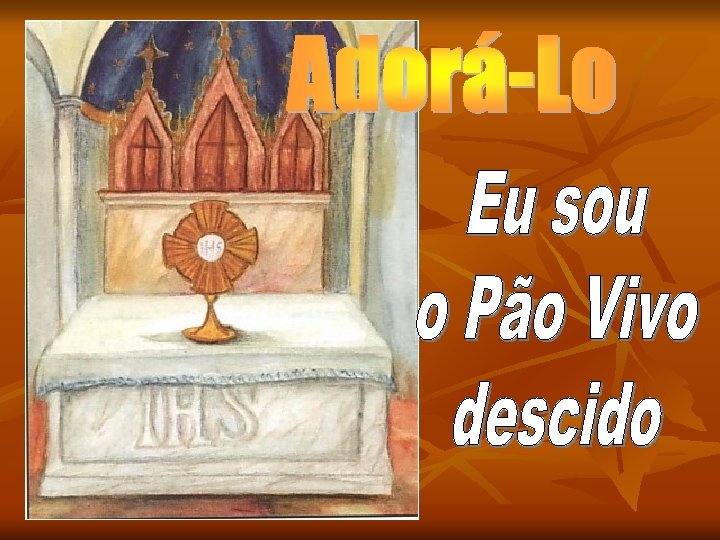 1 Cor 11, 24 -26 Com efeito, eu recebi do Senhor o que também vos transmiti: o Senhor Jesus na noite em foi entregue, tomou pão e, deu graças, partiu-o e disse: «Isto é o meu corpo, que é para vós; fazei isto em memória de mim» . Do mesmo modo, depois da ceia, tomou o cálice e disse: «Este cálice é a nova Aliança no meu sangue; fazei isto em memória de mim. » Porque, todas as vezes que comerdes deste pão e beberdes deste cálice, anunciais a morte do Senhor, até que Ele venha.