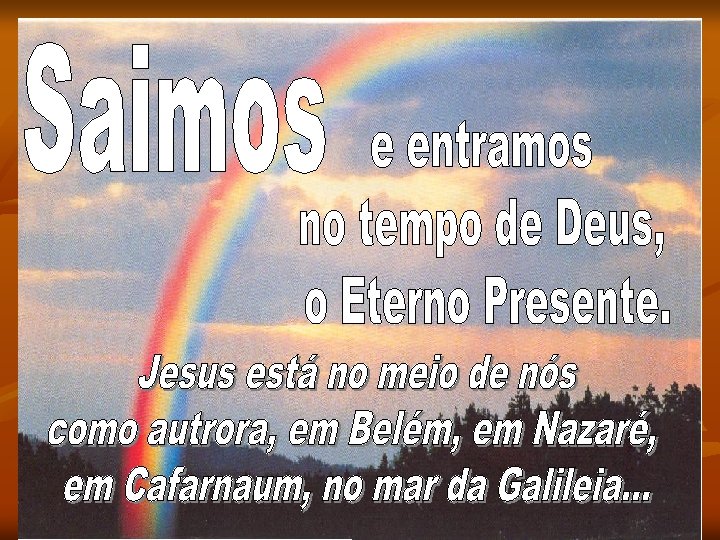 «Ide, pois, fazei discípulos de todos os povos, baptizando-os em nome do Pai, do Filho e do Espírito Santo, ensinando-os a cumprir tudo quanto vos tenho mandado. E sabei que Eu estarei sempre convosco até ao fim dos tempos. » (Mt 28)