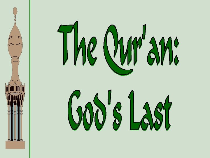 The Qur’an Z Muslims believe it contains the word of God. Z 114 suras (chapters). Z In the name of Allah, the compassionate, the merciful. Z Written in Arabic.