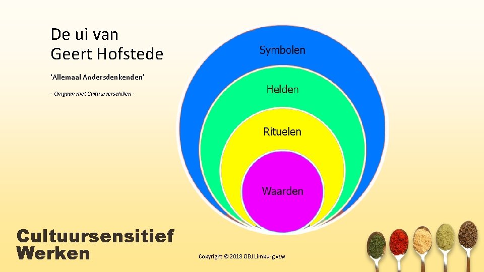 De ui van Geert Hofstede ‘Allemaal Andersdenkenden’ - Omgaan met Cultuurverschillen - Cultuursensitief Werken Copyright © 2018 OBJ Limburg vzw