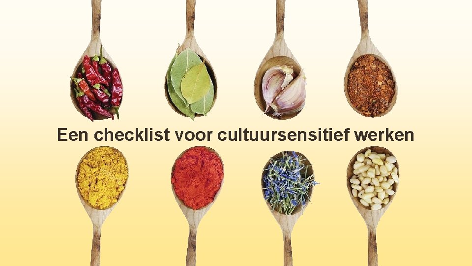 Checklist van cultuursensitief werken • Vragenlijst voor het opstellen van een eigen checklist Cultuursensitief Werken Copyright © 2018 OBJ Limburg vzw
