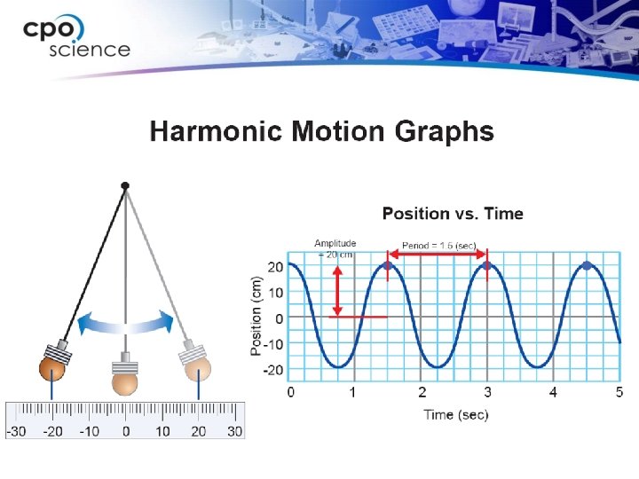 18. 2 Practice: Harmonic Motion Graphs Key Question: How do we make graphs of harmonic motion? Objectives: Construct graphs of harmonic motion. n Interpret graphs of harmonic motion to determine phase, amplitude, and period. n Use the concept of phase to describe the relationship between two examples of harmonic motion. n