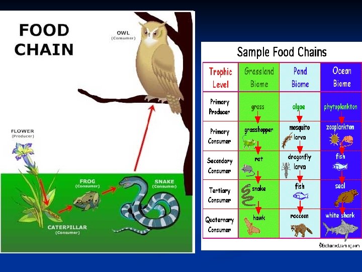 WARM UP Draw four food chains: remember what always comes first in a food chain AND then put each organism in the correct order 1. First food chain: deer, tree 2. Second food chain: snake, grass, hawk, mouse 3. Third food chain: hawk, grass, mouse 4. Fourth food chain: cricket, hawk, grass, frog