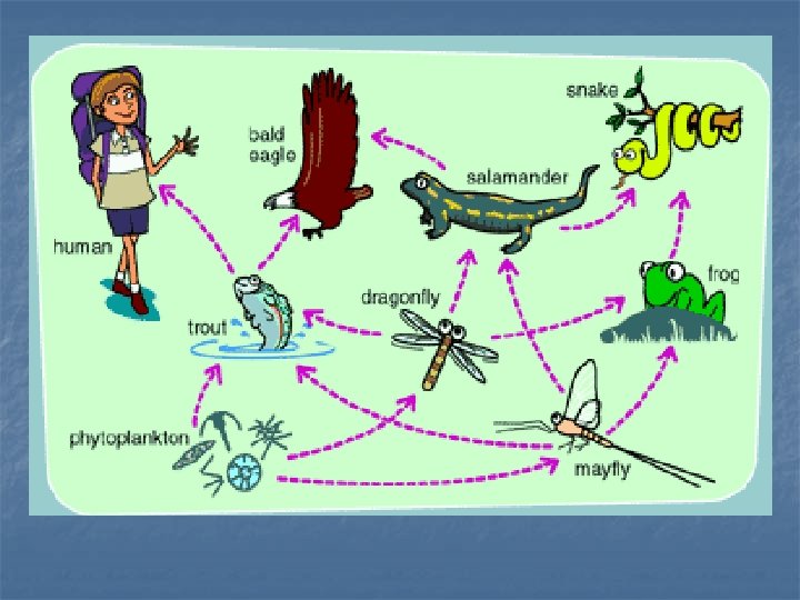 Are we done with our food chain, yet? n Scavengers eat dead stuff, but they CANNOT eat everything. n They leave behind a lot of unused energy and nutrients. What happens to the scavengers’ leftovers? n Decomposers eat the scraps and break down the remaining organic matter. n