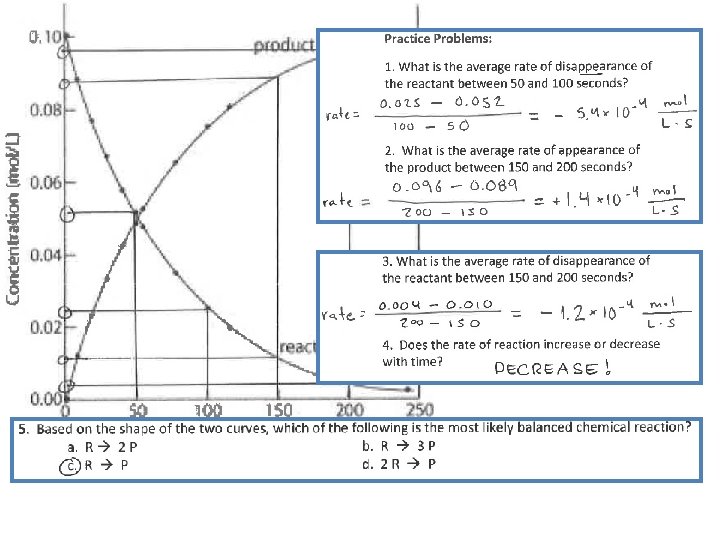 Reactant Concentration vs. Time Appearance of product Y For the equation: X Y Find the average “rate of appearance” of Y during the time interval of 10 – 15 minutes.