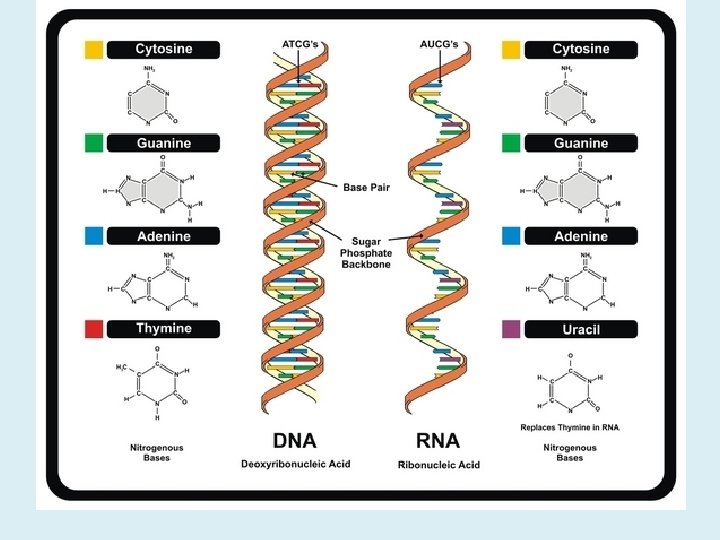 Objectives • Be able to describe the structure of a nucleotide • Be able to describe the structure of RNA • Be able to describe the structure of DNA