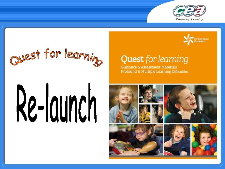 Quest for learning § launched in 2007 for learners aged 3 – 19 years with PMLD § developed by teachers for teachers § non-statutory assessment materials and guidance § extensive training programme provided for special schools § online recording format developed and widely used § available for download at www. nicurriculum. org. uk