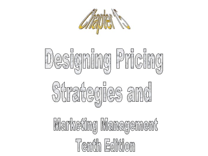 Pricing Methods • • • Markup Pricing Target Return Pricing Perceived Value Pricing Going-Rate Pricing Sealed-Bid Pricing