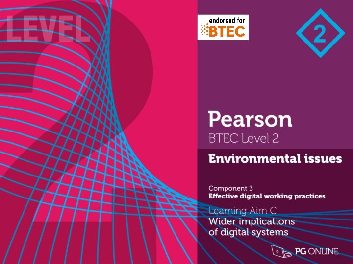 Environmental Issues Learning Aim C The wider implications of digital systems Copyright © 2019 PG Online Limited The contents of this unit are protected by copyright. This unit and all the worksheets, Power. Point presentations, teaching guides and other associated files distributed with it are supplied to you by PG Online Limited under licence and may be used and copied by you only in accordance with the terms of the licence. Except as expressly permitted by the licence, no part of the materials distributed with this unit may be used, reproduced, stored in a retrieval system, or transmitted, in any form or by any means, electronic or otherwise, without the prior written permission of PG Online Limited. Licence agreement This is a legal agreement between you, the end user, and PG Online Limited. This unit and all the worksheets, Power. Point presentations, teaching guides and other associated files distributed with it is licensed, not sold, to you by PG Online Limited for use under the terms of the licence. The materials distributed with this unit may be freely copied and used by members of a single institution on a single site only. You are not permitted to share in any way any of the materials or part of the materials with any third party, including users on another site or individuals who are members of a separate institution. You acknowledge that the materials must remain with you, the licencing institution, and no part of the materials may be transferred to another institution. You also agree not to procure, authorise, encourage, facilitate or enable any third party to reproduce these materials in whole or in part without the prior permission of PG Online Limited.
