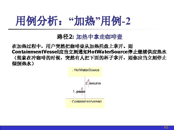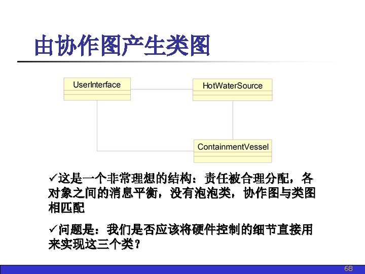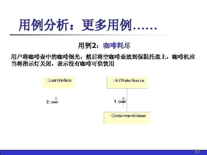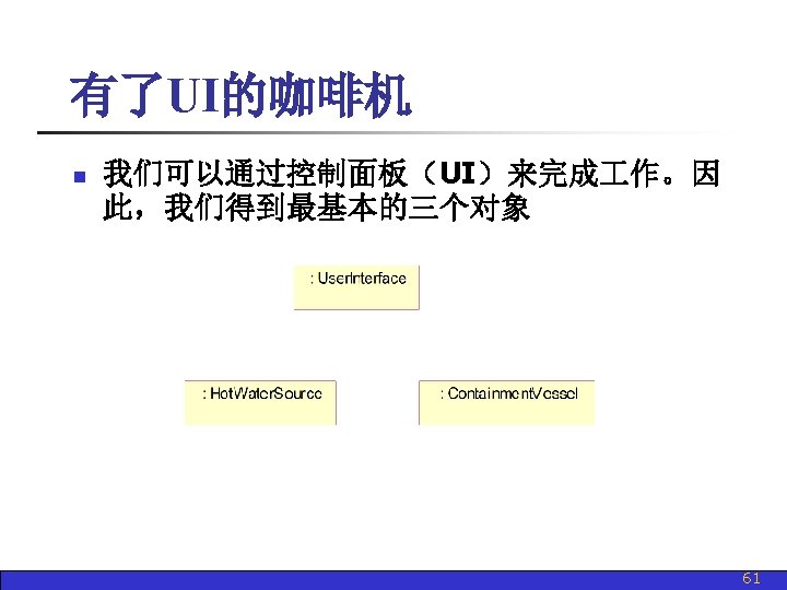 相关API-2 /** * 此函数返回加热按钮的状态。加热按钮是一个接触式 * 按钮,能够记住它自己的状态。调用这个函数将返回 * 其当前状态。然后将自己的状态恢复为 * BREW_BUTTON_NOT_PUSHED。 */ public int get. Brew. Button. Status(); public static final int BREW_BUTTON_PUSHED = 0; public static final int BREW_BUTTON_NOT_PUSHED = 1; /** * 此函数开关烧水壶的加热器件 */ public void set. Boiler. State(int boiler. Status); public static final int BOILER_ON = 0; public static final int BOILER_OFF = 1; 48