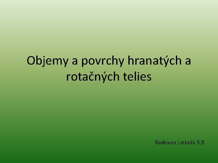 Objemy a povrchy hranatých a rotačných telies Radovan Latinák 3. B