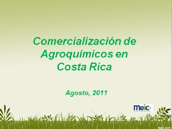 Objetivo • Analizar el mercado de agroquímicos en Costa Rica con el propósito de identificar factores que pueden obstaculizar la libre competencia de mercado y limitan la competitividad del sector agrícola. • Periodo de análisis: Enero 2010 -marzo 2011. • Marco legal: Ley de Promoción de la Competencia y Defensa del consumidor No. 7472 y su Reglamento.