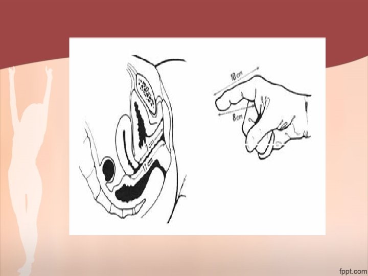 II. L'examen périnéal C’est le premier temps de l’examen gynécologique à proprement parler. Il est réalisé en position gynécologique, au repos puis éventuellement lors d’efforts de poussée. Il permet d’apprécier: • L’imprégnation hormonale • L’existence de séquelles obstétricales ou de mutilations génitales féminines • La distance ano-vulvaire, normalement ≥ à 3 cm • La présence d’une infection cutanéo-muqueuse (mycose, herpès, condylomes, …) ou des glandes de Skene ou de Bartholin • La présence de lésions traumatiques à la suite d’une agression sexuelle