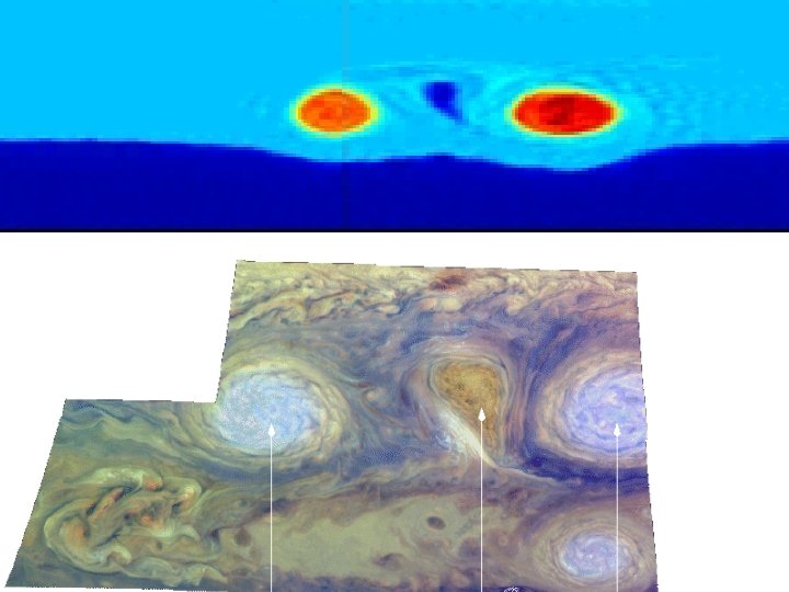 Streamlines are not particle pathlines • Clouds are NH 3 ice crystals • Created with cooling, destroyed with warming • Due to 3 D secondary flow: – Anti-cyclonic regions have upwelling – Cyclonic regions have down-welling • In a sub-adiabatic atmosphere upwelling cools the flow