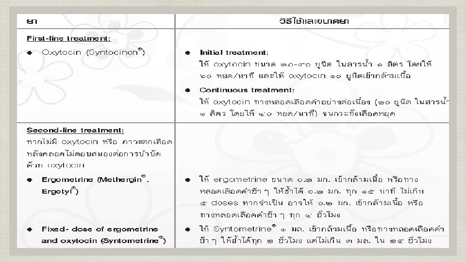 PPH q Blood loss > 500 cc in normal delivery > 1, 000 cc in cesarean section q <24 hr : early/primary PPH q >24 hr - <6 wk : late/secondary PPH