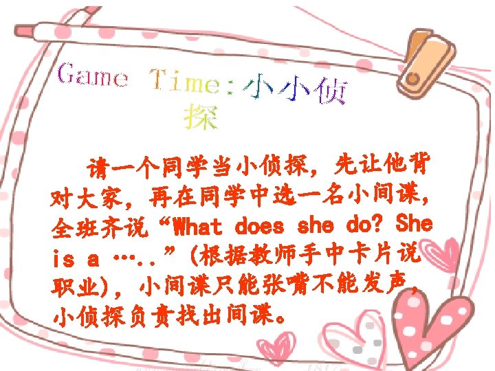 Sally father mother doctor teacher Interview(采访) your parners these questions: 1. What does your father do? 2. What does your mother do? 3. What does your. . . do?